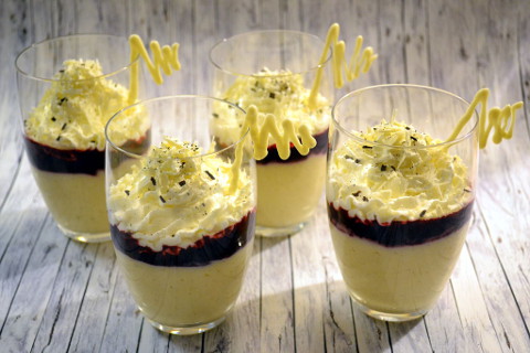 Desserts im Glas bestehen sehr oft aus verschiedenen Schichten. So werden Cremes, Pudding, Mousse, Kuchen oder Kekse mit Früchten, Sahne- oder Dessert- Soßen aufeinander geschichtet. Das sieht in einem Gefäß natürlich optisch schon sehr schön aus. Dazu kommt das es in jedem Glas eine Geschmackliche Überraschung gibt.